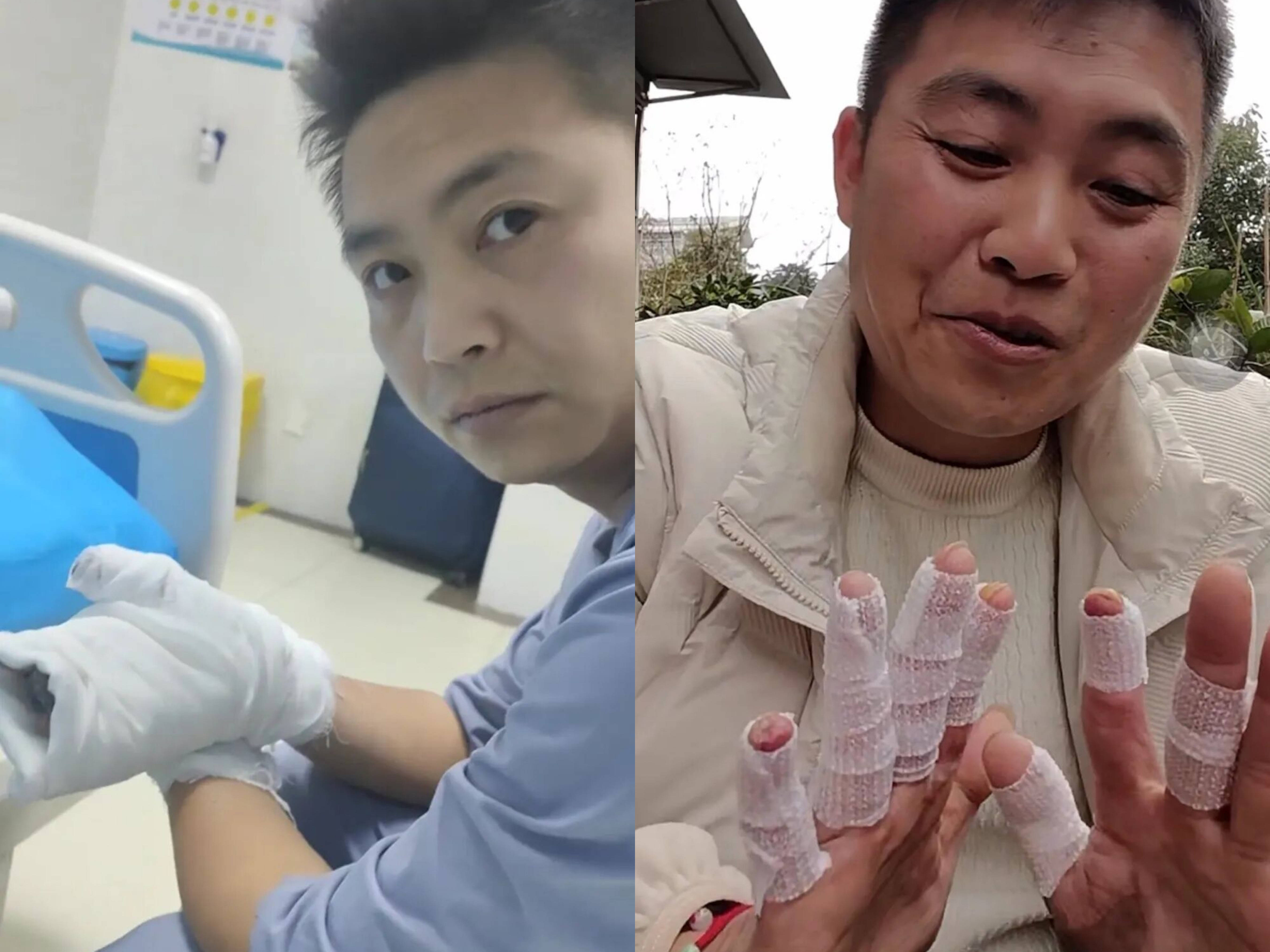 “我是一名卡车司机,这次救援让我的手受伤非常严重。”该男子说到,自己的手目前恢复的还可以,但手部仍有5根手指为抑制瘢痕增生,绑着绷带,“有5根手指已经有指纹了,恢复还需要一段时间,可能以后想开货车也开不了了。”、“重活干不了,抓东西手就痛。”