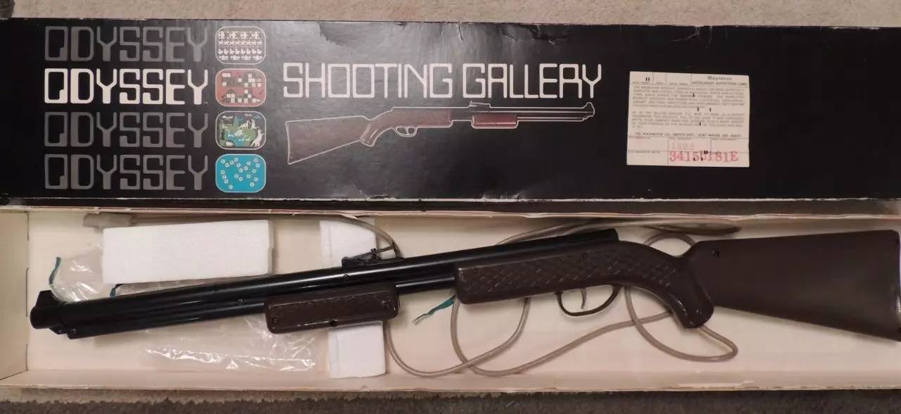 电子游戏出现后,世界上第一款电视游戏机“奥德赛”面世。一共发售了20几款游戏的它,就有4个是要用光枪的。其发明者拉夫·贝儿为此专门射击了一支非常拟真的塑料步枪——这个造型要是放到国内肯定是不让卖的。