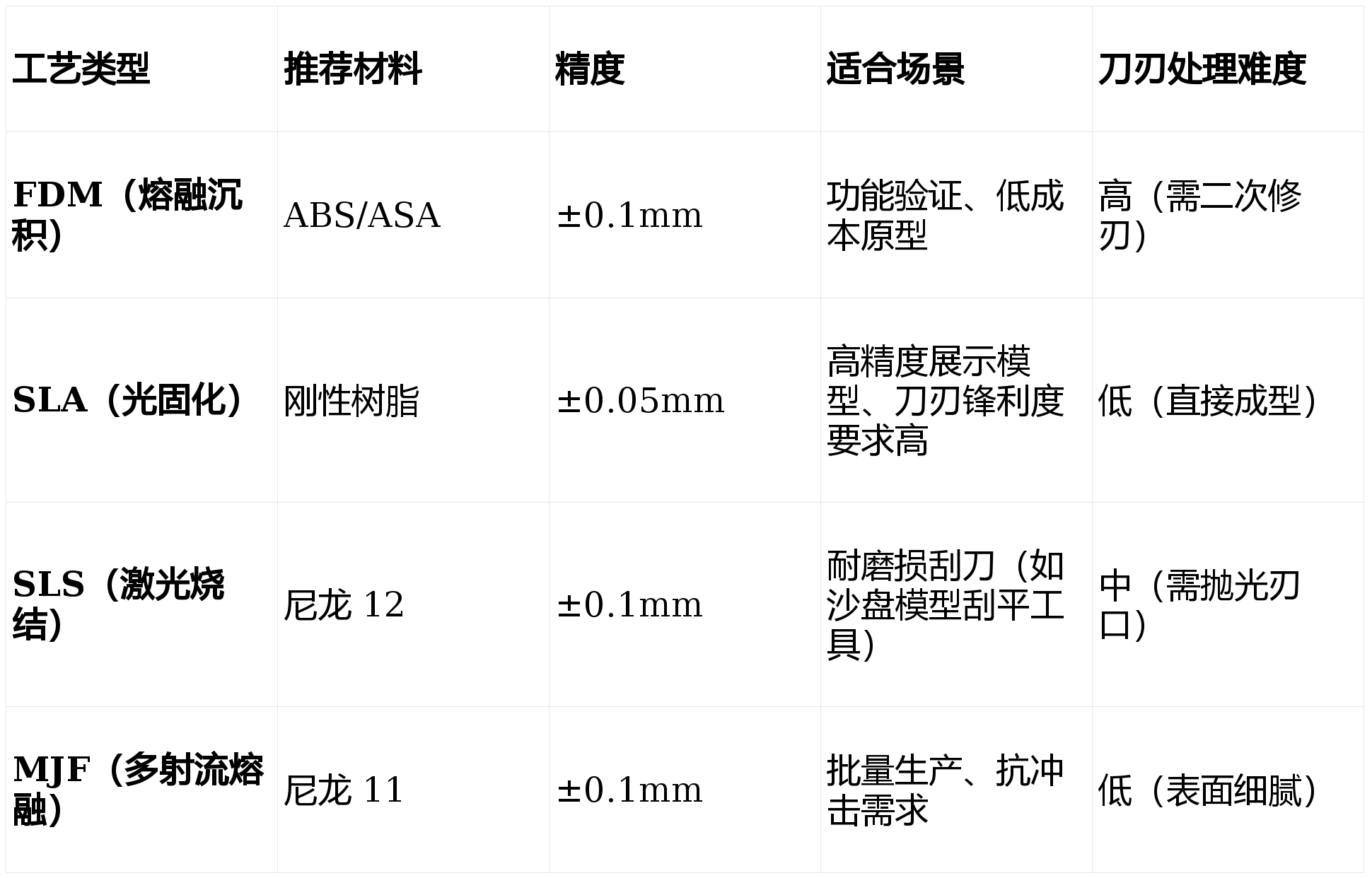 光敏树脂:精度高、表面光滑,刀刃可直接成型 0.2mm 厚度,但脆性大(避免大力碰撞);